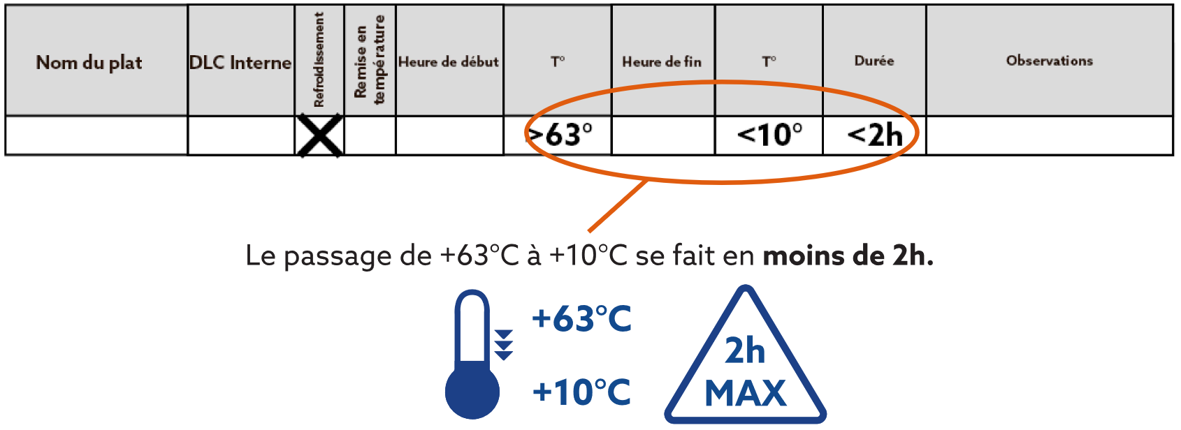 Les températures et heures de refroidissement rapide font l'objet d'auto-contrôles.p>